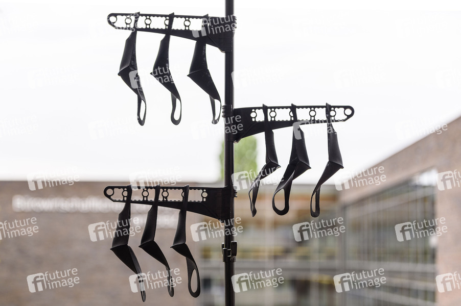 Gereinigte Mundschutze zum Trocknen aufgehängt