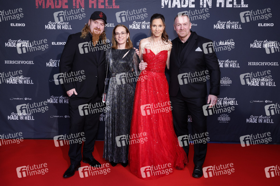 Ludwig Maurer, Stephanie Maurer, Jasmin Rank und Sepp Maurer bei der Premiere des Dokumentarfilms 'Sepp Maurer - Made in Hell' im CineWorld. Cham, 16.12.2024