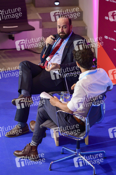 Hamzah Almustafa und Jaafar Abdul Karim beim 18. Deutsche Welle Global Media Forum 2025 im Auditorium vom Kunstmuseum Bonn. Bonn, 08.07.2025