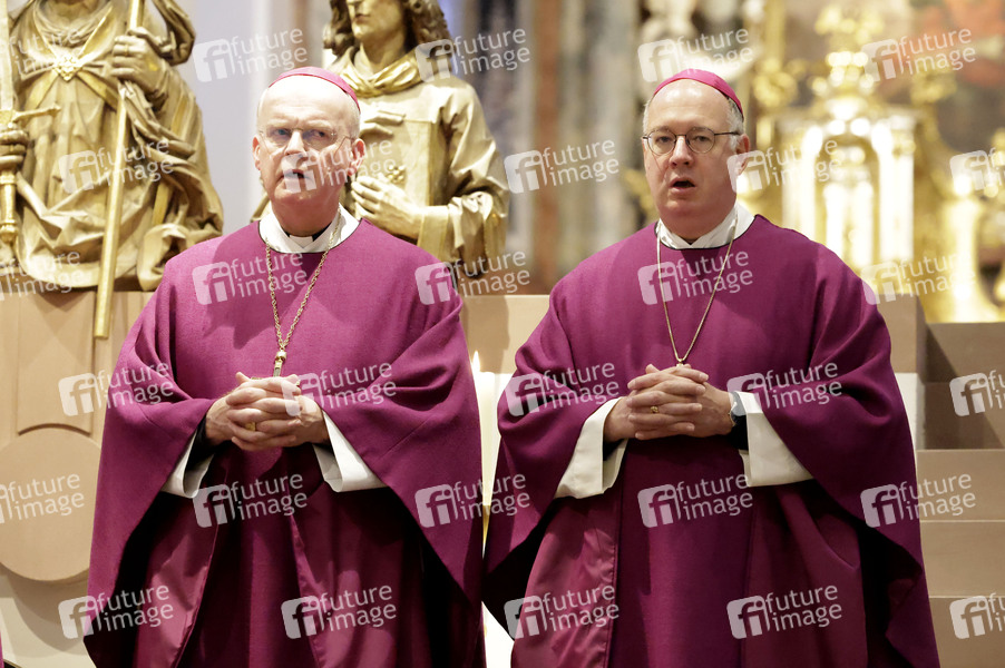 Franz-Josef Overbeck und Rupert Graf zu Stolberg beim Gottesdienst der Frühjahrsvollversammlung der Deutschen Bischofskonferenz im Neumünster St. Johannes Evangelist und Johannes der Täufer. Würzburg, 24.02.2026
