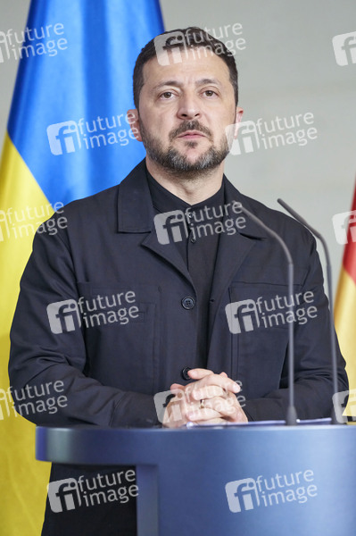 Wolodymyr Selenskyj beim Empfang des Präsidenten der Ukraine mit militärischen Ehren und zu einem gemeinsamen Gespräch mit dem Bundeskanzler mit anschließendem Pressestatement im Bundeskanzleramt. Berlin, 28.05.2025