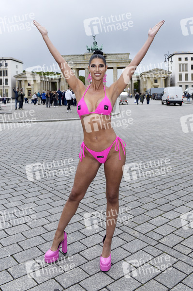 Micaela Schäfer beim Fototermin zur Erotikmesse Venus Berlin 2025 am Brandenburger Tor. Berlin, 15.09.2025