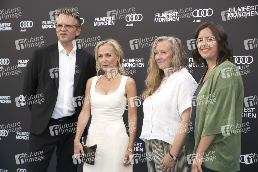 Christoph Gröner, Gillian Anderson, Raynor Winn und Julia Weigl bei der Premiere des Kinofilms 'Der Salzpfad / The Salt Path' und der Verleihung des CineMerit Awards auf dem 42. Filmfest München 2025 im Deutschen Theater. München, 01.07.2025