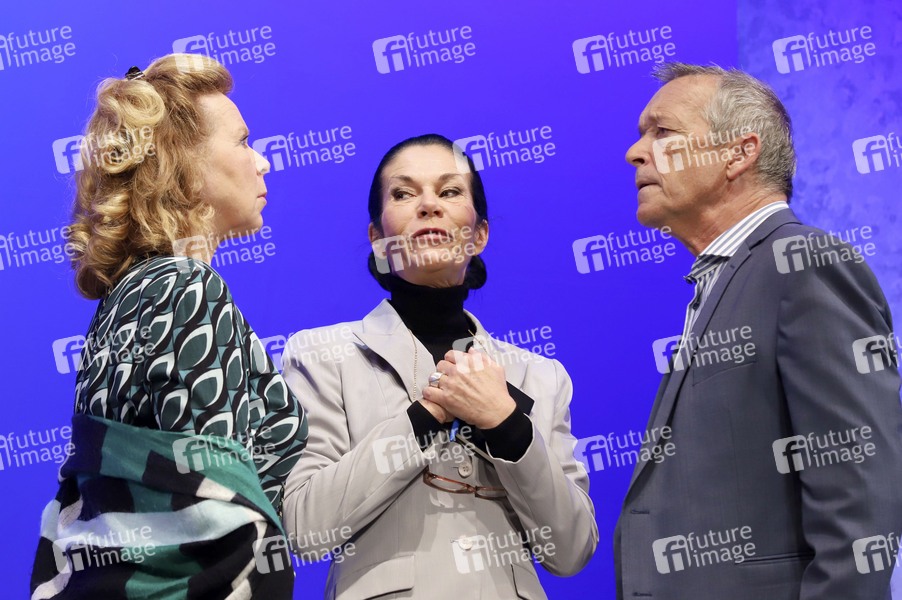 Marion Kracht, Simone Ritscher und Michael Roll bei der Fotoprobe zum Theaterstück 'Und wer nimmt den Hund?' im Winterhuder Fährhaus. Hamburg, 21.09.2022