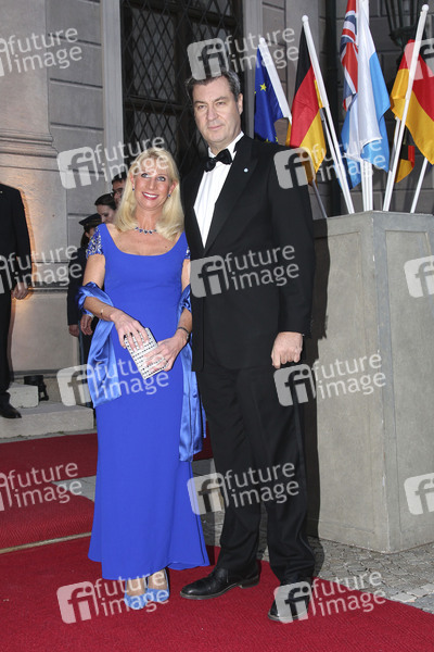 Markus Söder mit Ehefrau Karin Söder beim Empfang der britischen Royals zum Staatsbankett vor der Residenz München. München, 09.05.2019