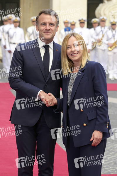 Politik, Staatsbesuch, Staatsvisite, Gespräch, bilaterale Gespräche, Treffen, Diplomatie, Staatsgast, Politiker, Staatspräsident, von Frankreich, Renaissance, RE, Politikerin, Ministerpräsidentin von Italien, Fratelli d'Italia, FdI