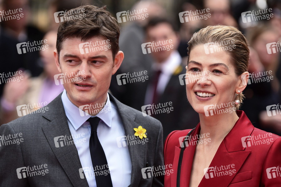 Sam Riley und Rosamund Pike bei der Premiere des Kinofilms 'Radioactive / Marie Curie - Elemente des Lebens' im Curzon Mayfair. London, 08.03.2020
