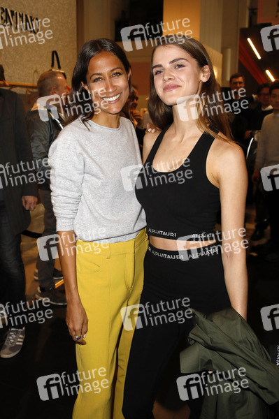 Rabea Schif und Lisa Tomaschewsky bei der Eröffnung des ersten temporären AlphaTauri 3D-Knit Labs im KaDeWe. Berlin, 03.04.2019