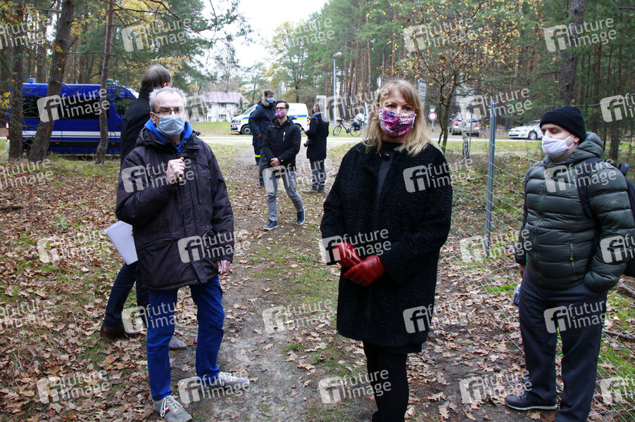 Petra Köpping beim Pressetermin zum Bau eines festen Zauns an der Restriktionszone zur Eindämmung der Afrikanischen Schweinepest im Truppenlager Werdeck. Krauschwitz, 11.11.2020