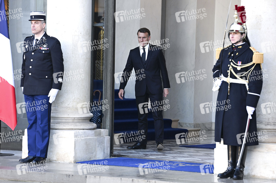 Emmanuel Macron beim Treffen der Koaltion der Willigen zu Beratung über die militärische Unterstützung für die Ukraine im Élysée-Palast. Paris, 06.01.2026