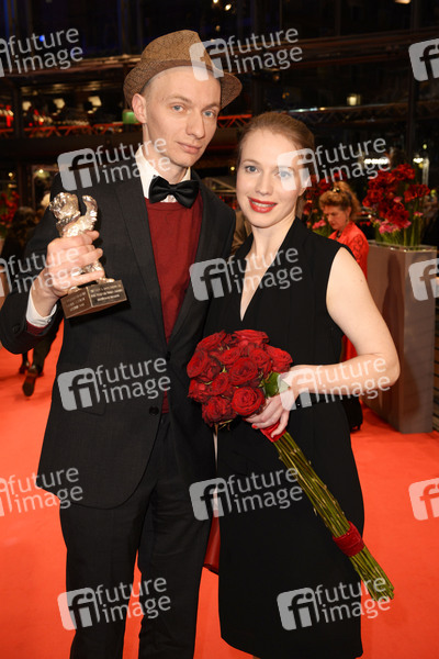 Dietrich Brueggemann und Anna Brueggemann mit dem Silbernen Bären für das beste Drehbuch für 'Kreuzweg / Stations of the Cross' nach der Closing Ceremony und Preisverleihung auf der Berlinale 2014 / 64. Internationale Filmfestspiele Berlin, 15.02.2014