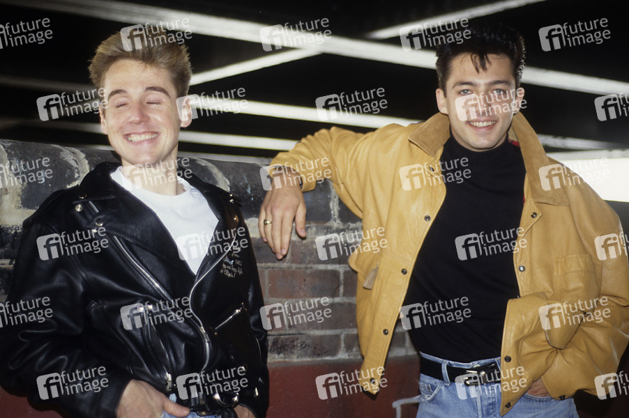 Phil Cilia und Chris Duffy von Waterfront bei einem exklusiven Photoshooting bei Virgin Records. London, 12.10.1988