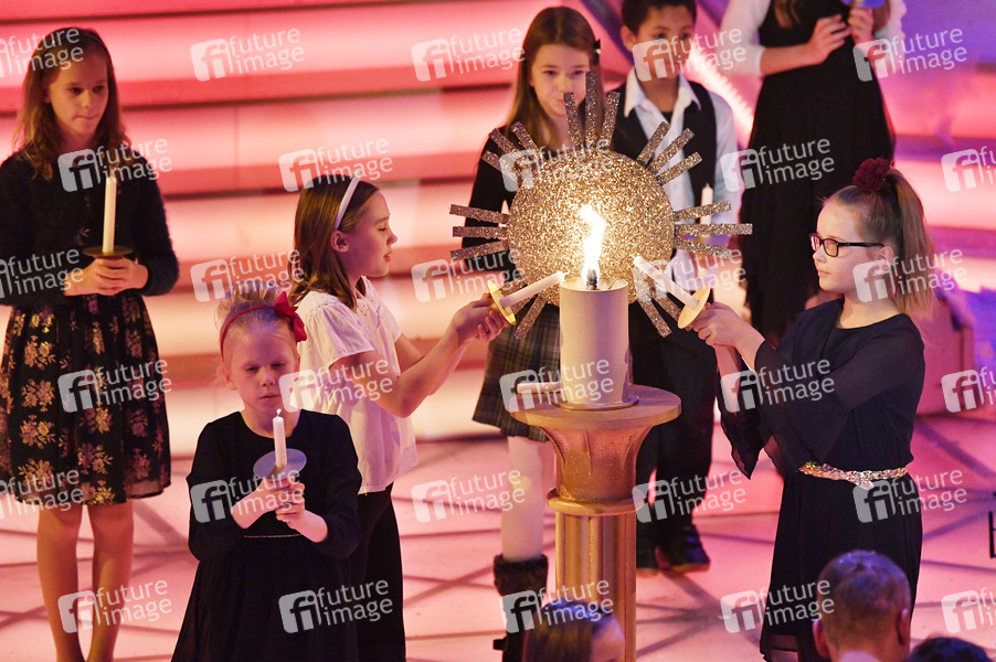 Kinder mit dem Friedenslicht aus der Geburtsgrotte in Bethlehem in der ARD TV-Show 'Das Adventsfest der 100.000 Lichter' im City Hotel am CCS. Suhl, 30.11.2019