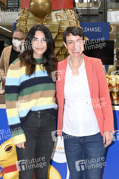 Lilli Hollunder und Julia Wöhlke beim Auftakt der Charity Aktion 'Goldhasen für eine gute Sache' zugunsten der Budianer Hilfe Kinder und Jugendhilfsorganisation in der Europa Passage. Hamburg, 31.03.2022