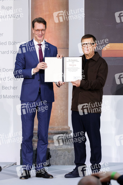 Hendrik Wüst und Andreas Gursky bei der Verleihung des Staatspreises des Landes Nordrhein-Westfalen 2025 an Fotograf Andreas Gursky im K21. Düsseldorf, 04.11.2025