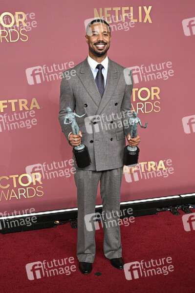 Michael B. Jordan mit dem Preis für den besten Filmdarsteller in 'Blood & Sinners' beim Photocall der Preisträger der 32. Verleihung der Actor Awards 2026 im Shrine Auditorium. Los Angeles, 01.03.2026