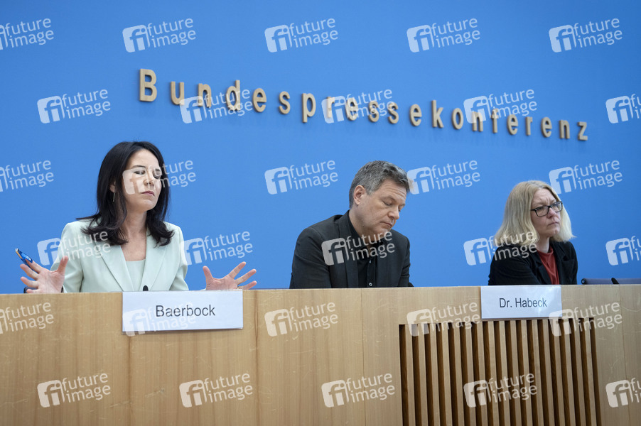 Annalena Baerbock und Robert Habeck bei der Bundespressekonferenz Bündnis 90/Die Grünen - Zu den Bundestagswahlen im Haus der Bundespressekonferenz. Berlin, 24.02.2025
