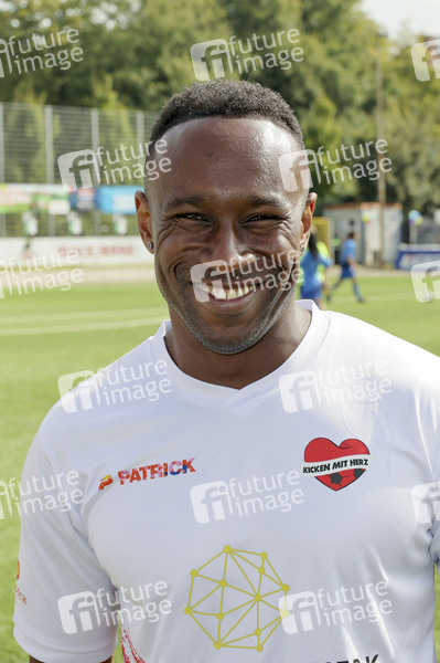 Jerry Kwarteng beim Benefiz-Fußballspiel 'Kicken mit Herz' 2024 zu Gunsten des Herzzentrums des UKE im Stadion des SC Victoria. Hamburg, 08.09.2024