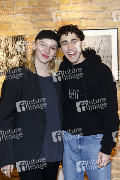 Jule Hermann und Riccardo Campione bei der Eröffnung der Fotoausstellung 'Zuversicht und Lebensfreude' der Fotografen Florian Froschmayer & Arne Friedrich in der Stay Curious Media Gervinusstrasse 12. Berlin, 10.01.2025