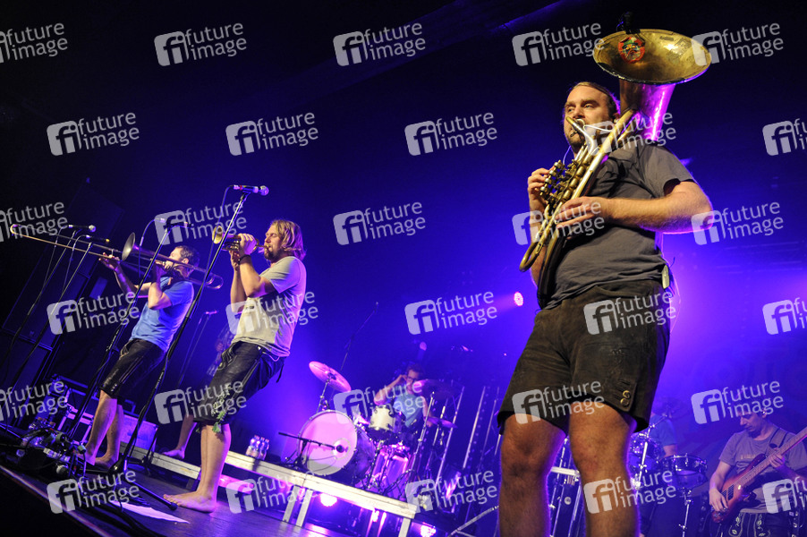Manuel Winbeck, Stefan Dettl, Manuel da Coll, Andreas Hofmeir und Mario Schoenhofer LaBrassBanda live in der Großen Freiheit 36. Hamburg, 10.11.2013