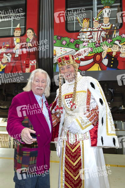 Hans Süper und Ralf Schumacher / Jungfrau Griet bei der Präsentation der Karnevals-S-Bahn 2020 im S-Bahn-Werk Köln Nippes. Köln, 31.01.2020