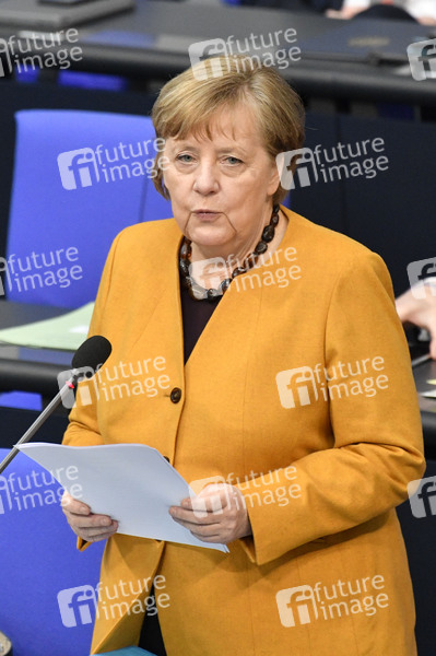 Angela Merkel in der 217. Sitzung des Deutschen Bundestages im Reichstagsgebäude. Berlin, 24.03.2021