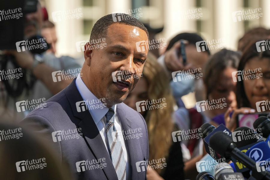 Breon Peace nach der Bekanntgabe des Urteils für R. Kelly am Urteil am Brooklyn Federal Court. Der R&B-Sänger ist im Missbrauchsprozess in New York zu 30 Jahren Haft wegen sexueller Ausbeutung Minderjähriger, Entführung und Bestechung verurteilt worden. New York, 29.06.2022