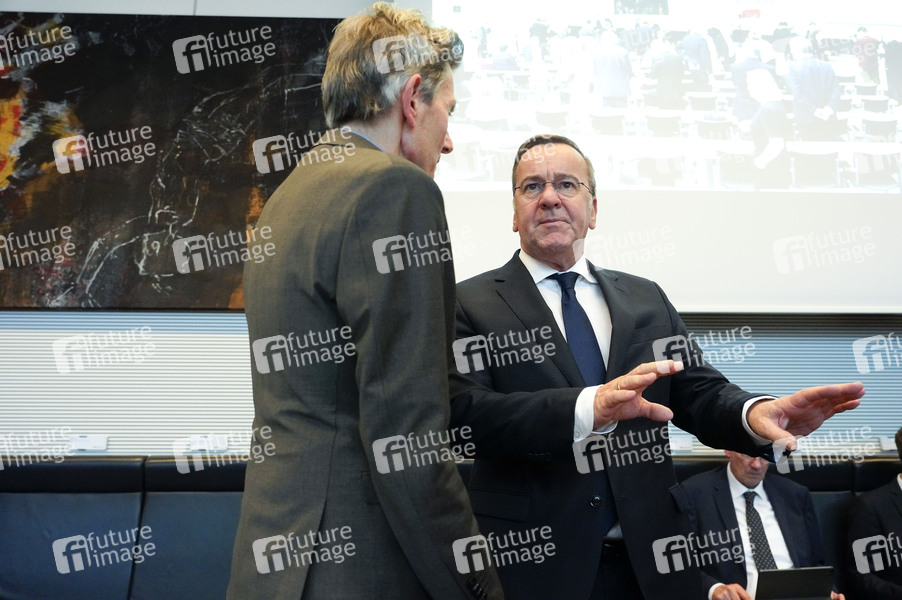 Rolf Mützenich und Boris Pistorius bei der Fraktionssitzung der SPD-Bundestagsfraktion im Reichstagsgebäude. Berlin, 15.10.2024