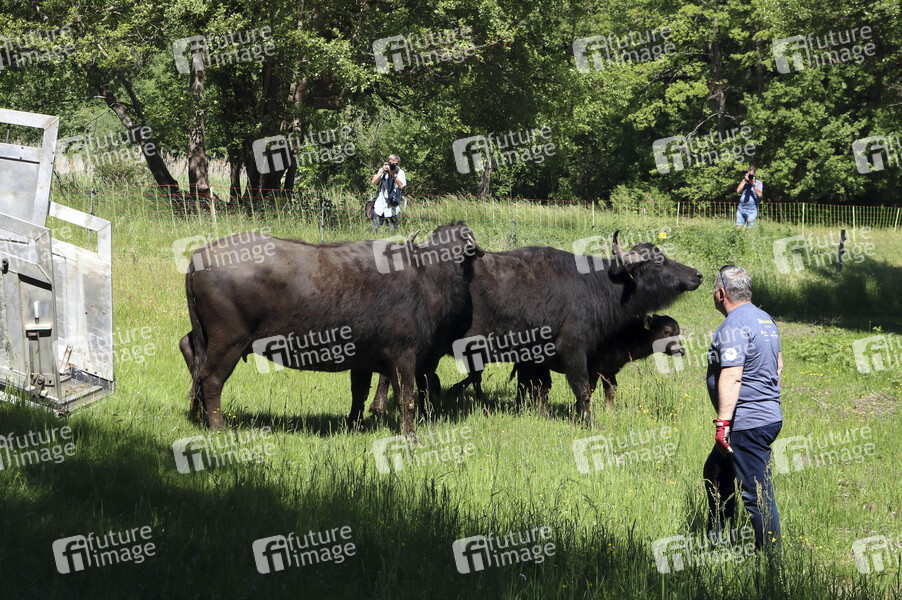 Natur, Umweltschutz, Tierschutz, Wildpflanzenschutz, Tiere, Rinder, Wildrinder, Rind, Bubalus arnee, Bovinae, Stirnwaffenträger, Hornträger, Asiatische Büffel, Wiese, Weide, Insel, Havel