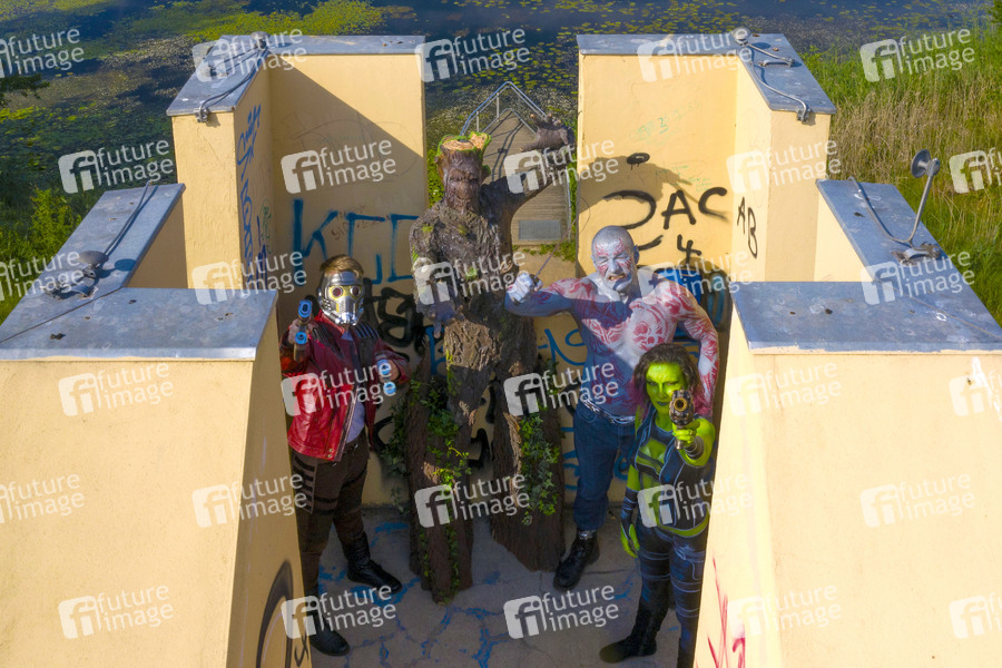 GEEK ART - Bodypainting meets SciFi, Fantasy and more: 'Guardians of the Galaxy' Photoshooting mit Janina Stein als Gamora, Fred Krull als Drax, Enrico Lein als Groot und Paul Skupin als Star-Lord auf dem Expo Gelände. Laatzen, 25.06.2019 - Ein Projekt des Fotografen Tschiponnique Skupin und des Bodypainters und Transformakers Enrico Lein