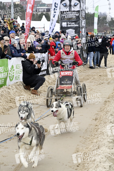 Wolfgang Lippert beim 9. Baltic Lights 2025 Charity-Schlittenhunderennen zu Gunsten der Welthungerhilfe zwischen der Seebrücke Ahlbeck und der Seebrücke Heringsdorf. Heringsdorf, 01.03.2025