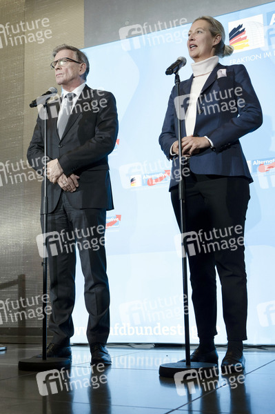 Gerold Otten und Alice Weidel beim Pressestatement zur Fraktionssitzung der AfD-Bundestagsfraktion im Reichstagsgebäude. Berlin, 24.03.2025