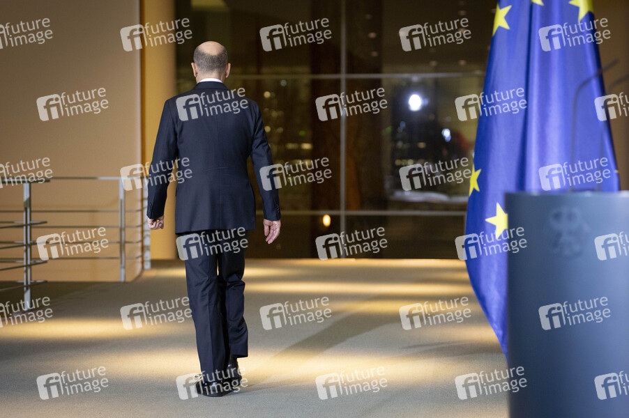 Olaf Scholz bei einem Pressestatement im Bundeskanzleramt, nachdem ein afghanischer Asylbewerber in München in eine Menschenmenge gefahren ist und viele Menschen verletzt hat. Berlin, 13.02.2025