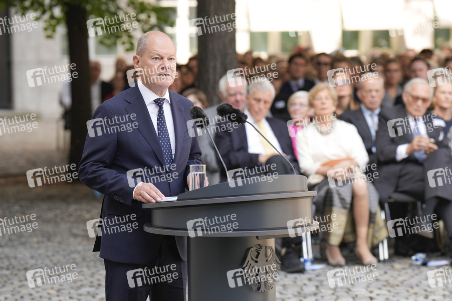 Olaf Scholz bei der Gedenkveranstaltung zum 80. Jahrestag des Aufstands gegen Nationalsozialistische Gewaltherrschaft mit Kranzniederlegung auf dem Ehrenhof des Bendlerblocks.Berlin, 20.07.2024