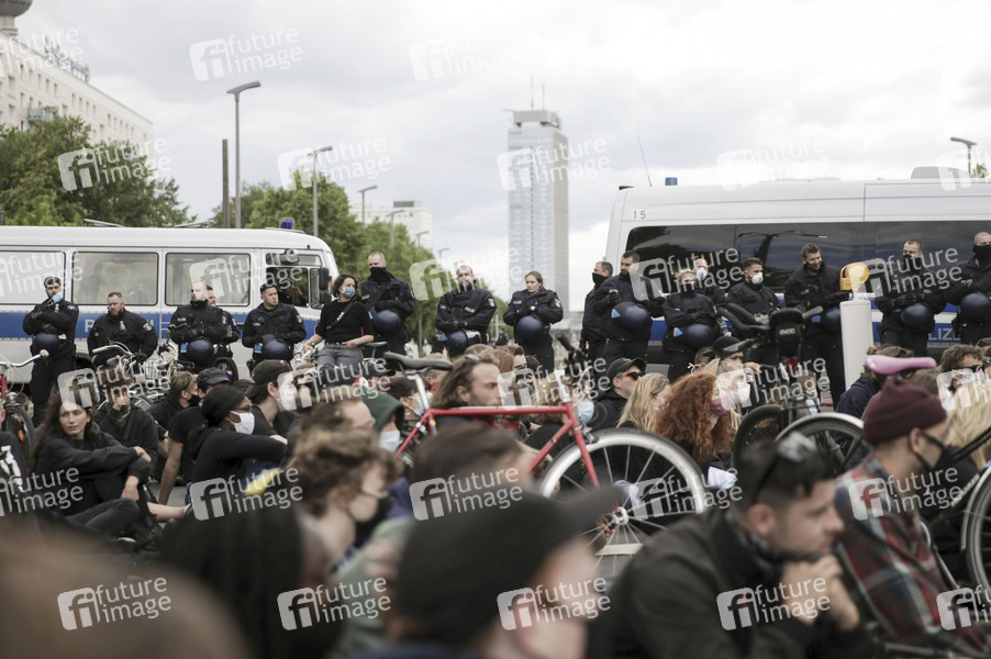 Ein Teil der Demonstranten der 'Silent Demo' am Alexanderplatz zog weiter zum Strausberger Platz und veranstaltete eine Sitzblockade. Berlin, 06.06.2020