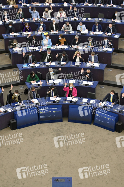 Europäisches Parlament, Plenum, Abstimmung, Voting, Stimmabgabe, Wahl, Entscheidungsfindung, Beschlussfassung, Demokratie, Politik, Strasbourg, Strassburg, Europaparlament, Europa-Politik, EU-Abgeordnete, EU-Parlament, EP, Parlament der Europäischen Union, European Parliament, European Union, Parlamentum Europaeum, MdEP, Mitglied des Europäischen Parlaments, Politiker, Politikerin, Politikerinnen, Symbolfoto, Symbolbild