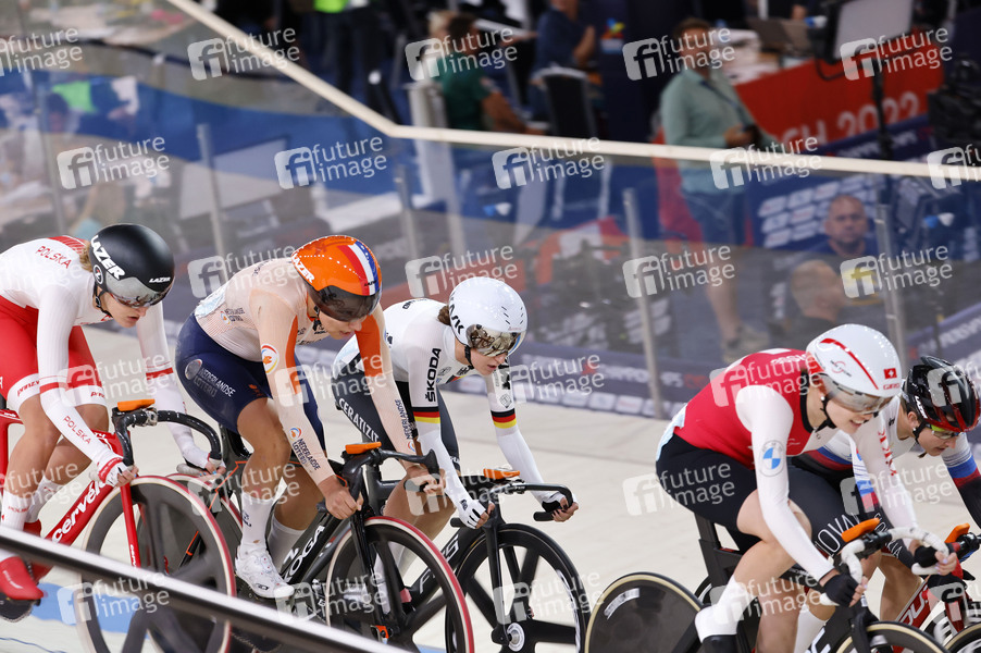 Finale Ausscheidungsfahren Frauen bei den European Championships 2022 im Bahnradsport in der Messe München. München, 13.08.2022