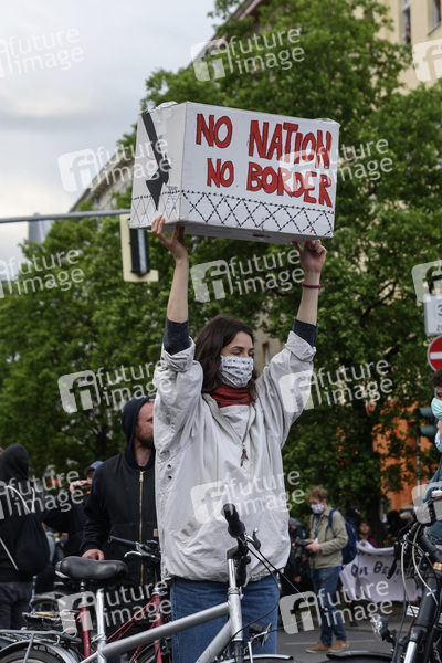 Etwa 1000 Personen nahmen an der 'Revolutionären 1.Mai-Demonstration' durch den Berliner Stadtteil Kreuzberg teil. Diese Demonstration war aufgrund der Corona-Eindämmungsverordnung nicht genehmigt und wurde per Twitter organisiert. Die Polizei konnte ein Zusammenkommen der vielen Personen nicht verhindern. Es gab mehrere Festnahmen im Verlauf der Nacht. Schwerpunkt der linken Proteste war in diesem Jahr die Migrations- und Flüchtlingspolitik. Berlin, 01.05.2020