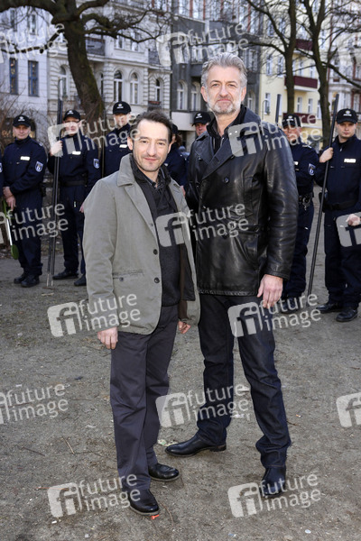 Boris Aljinovic und Dominic Raacke beim Setfototermin zum ARD-Krimi 'Tatort - Gegen den Kopf' (AT) am U-Bahnhof Schönleinstraße. Berlin, 05.03.2013