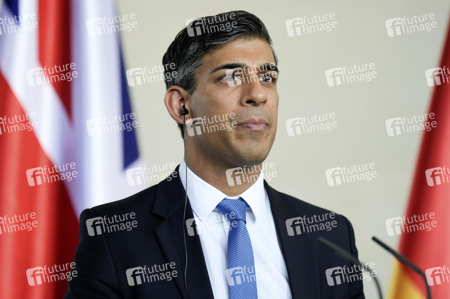 Rishi Sunak beim Empfang des Premierministers des Vereinigten Königreichs von Großbritannien und Nordirland mit militärischen Ehren und zu einem gemeinsamen Gespräch mit dem Bundeskanzler mit anschließendem Pressestatement im Bundeskanzleramt. Berlin, 24.04.2024