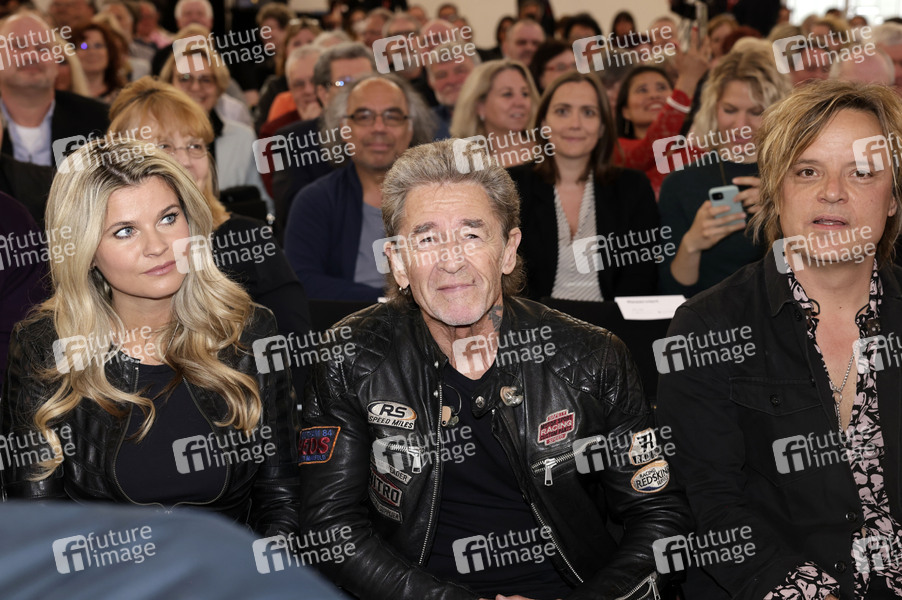 Peter Maffay mit Lebensgefährtin Hendrikje Balsmeyer und Peter Keller bei der Verleihung des Frankfurter Musikpreises 2020 an Peter Maffay & Band in der Paulskirche. Frankfurt am Main, 29.04.2022