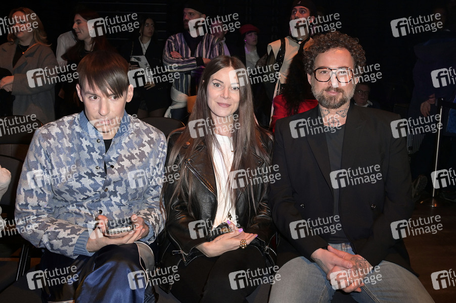 Kilian Kerner, Rebekka Ruetz und Marcel Ostertag bei der Danny Reinke Fashion Show auf der Berlin Fashion Week Autumn/Winter 2024 in der Verti Music Hall. Berlin, 07.02.2024