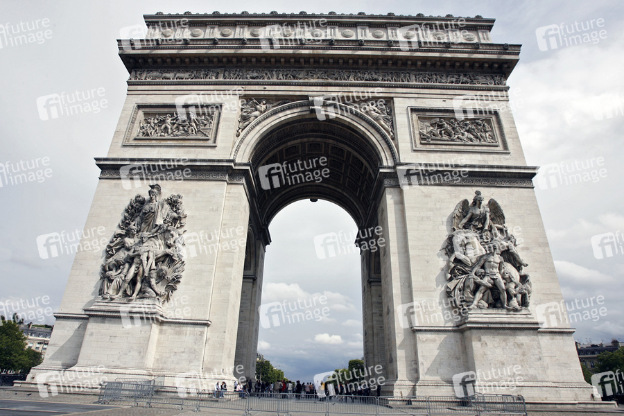 der Triumphbogen wurde 1806 von Napoleon nach der Schlacht von Austerlitz zur Verherrlichung seiner Siege in Auftrag gegeben, nach Unterbrechung vollendet 1936, 49 m hoch, 45 m breit, 22 m tief