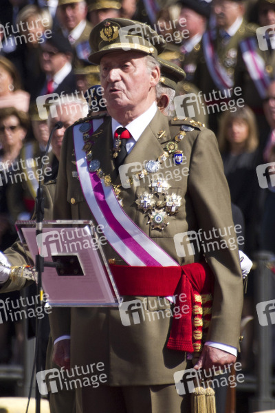 Die Königliche spanische Familie ehrt das Regimiento de Caballeria Acorazado Alcantara Nr.10 am Palacio Real, Madrid
