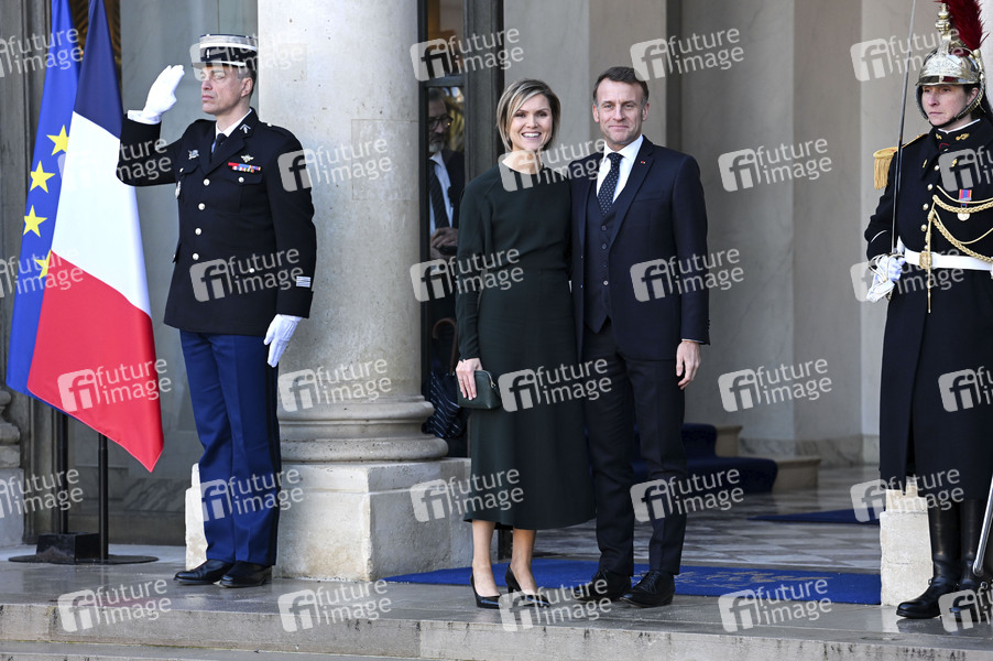 Kristrun Frostadottir und Emmanuel Macron beim Treffen der Koaltion der Willigen zu Beratung über die militärische Unterstützung für die Ukraine im Élysée-Palast. Paris, 06.01.2026