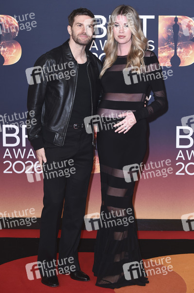 Joel Dommett mit Ehefrau Hannah Cooper bei der Verleihung der 46. BRIT Awards 2026 in der Co-op-Arena. Manchester, 28.02.2026