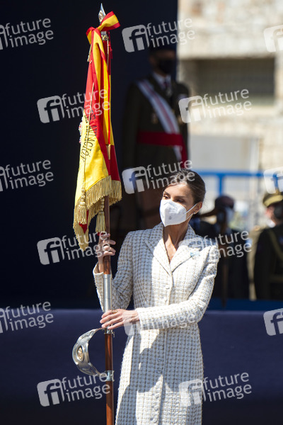 Königin Letizia von Spanien bei der Zeremonie der Übergabe der Nationalflagge an die ACAVIET (Luftfahrtakademie der Armee) in der Helipuerto Base Coronel Mate. Colmenar Viejo, 07.05.2021