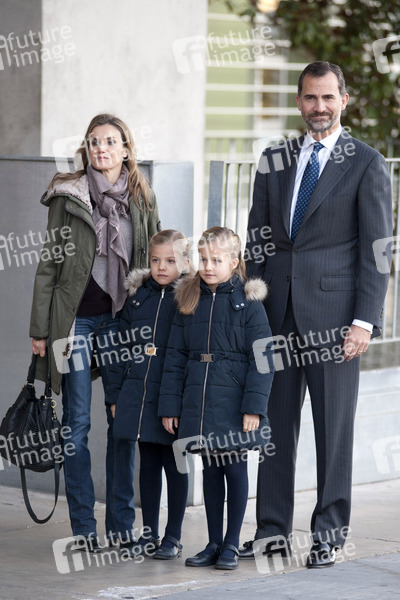 Prinzessin Letizia, Prinzession Sofia, Prinzessin Leonor und Prinz Felipe beim Besuch von König Juan Carlos im Quiron Universitätskrankenhaus. Pozuelo de Alarcon, 22.11.2013