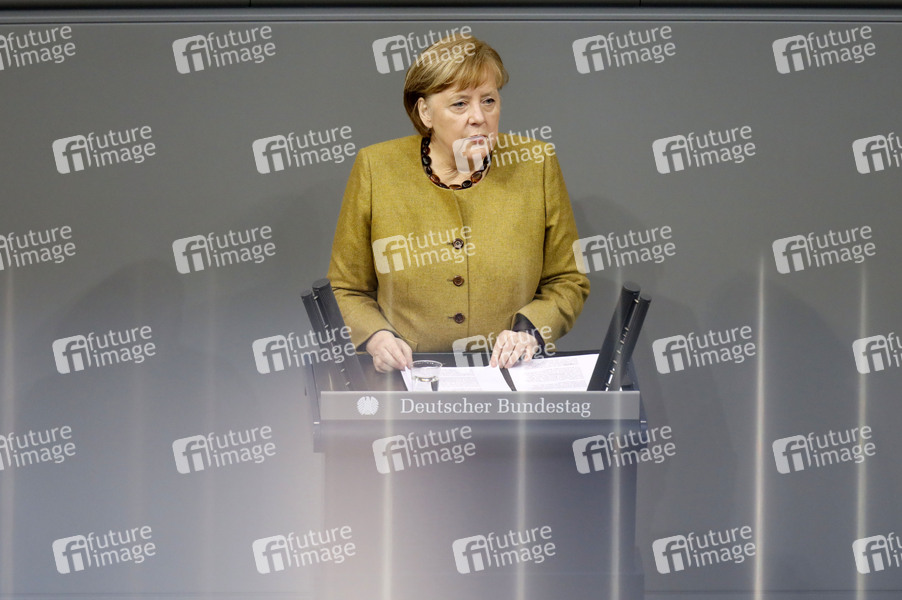 Angela Merkel in der 209. Sitzung des Deutschen Bundestages im Reichstagsgebäude. Berlin, 11.02.2021