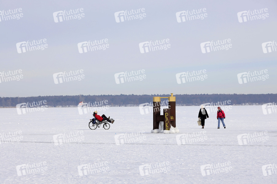 Eisfläche, Müggelsee, See, Winter, Wetter, Eis, zugefroren, Winterlandschaft, Winterspaß, Ausflug, Dauerfrost, gefroren, Winterwetter, Wetterlage, Frost, eisig, Eislauf, gefroren, winterlich